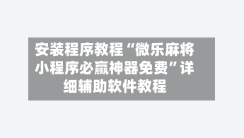 下一篇:秒懂经验“微信小程序微乐麻将必赢神器软件”科技辅助神器手机版教程